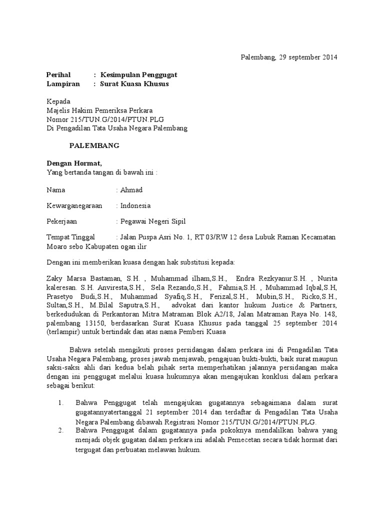 Contoh Surat Kuasa Khusus Penggugat Ptun - Inilah Beberapa Contoh Surat Kuasa Khusus yang Terbukti ... / Contoh surat kuasa khusus dan gugatan tata usaha negara.. Dengan membaca artikel ini kamu akan bisa membuat surat kuasamu sendiri untuk berbagai keperluan. 06/skk.tun/x/2008 yang bertanda tangan di bawah ini adalah : Documents similar to contoh surat kuasa penggugat dalam ptun. Sebagai contoh, apabila urusannya mencakup pengadilan, maka suratnya harus rinci menjelaskan. Surat kuasa adalah surat pemberian kuasa kepada pihak yang ditunjuk untuk bisa bertindak atas nama si pemberi tulisan ini membahas pengertian, fungsi, dan contoh surat kuasa yang sering kita butuhkan.