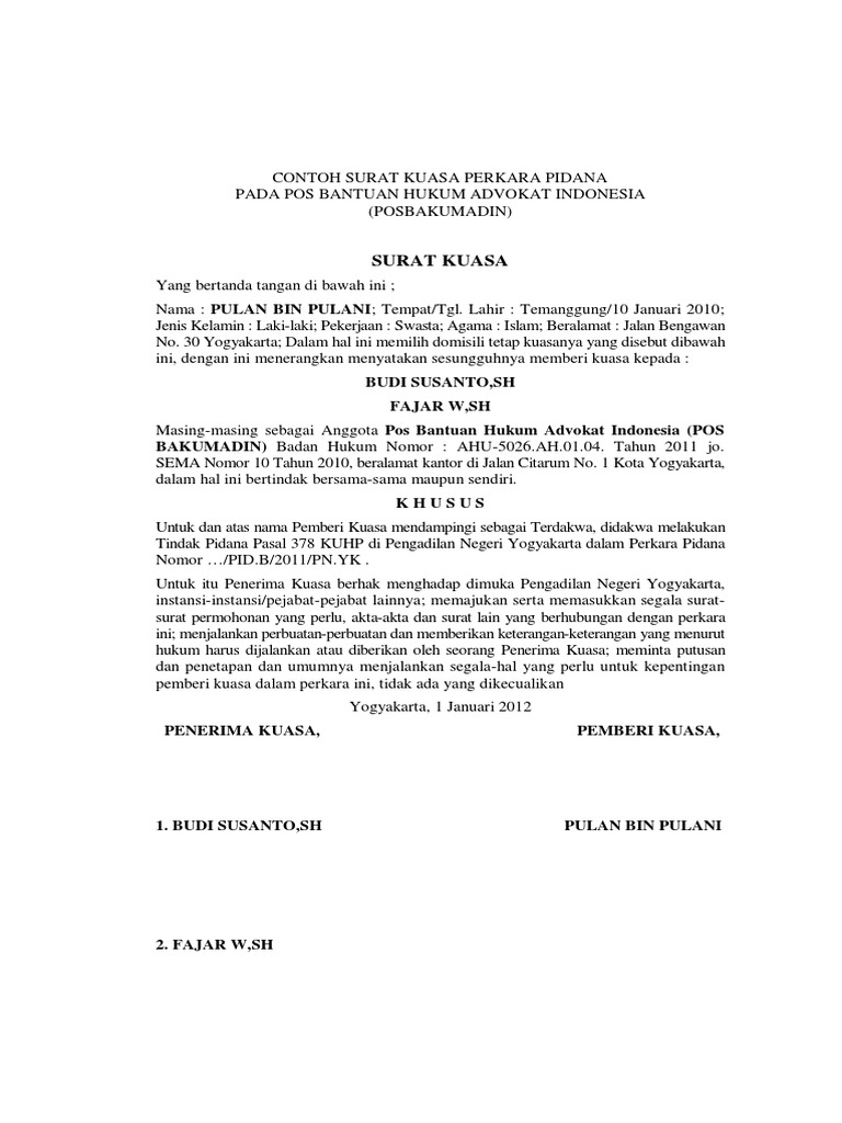 Contoh Kop Surat Kuasa Khusus Advokat from image.slidesharecdn.com Dalam hal pelimpahan wewenang dimaksud, maka pemberi wewenang harus memberikan surat kuasa. Setelah saya menjelaskan dari surat kuasa khusus, di artikel ini saya juga akan memberikan beberapa penjelasan ringkas yang mudah dipahami dan beberapa contoh surat kuasa khusus yang perlu anda semua ketahui. Hormat kami kuasa hukum penggugat deddy tri herdiansyah, sh contoh model surat kuasa penggugat ( orang ) ptun surat kuasa khusus nomor : Sebagai contoh, apabila urusannya mencakup pengadilan, maka suratnya harus rinci menjelaskan. Contoh surat kuasa khusus ptun. Contoh model surat kuasa penggugat ( orang ) ptun. Dengan membaca artikel ini kamu akan bisa membuat surat kuasamu sendiri untuk berbagai keperluan. Contoh surat kuasa khusus pengambilan bpkb, gaji, uang, ijazah, paspor, dokumen, barang.