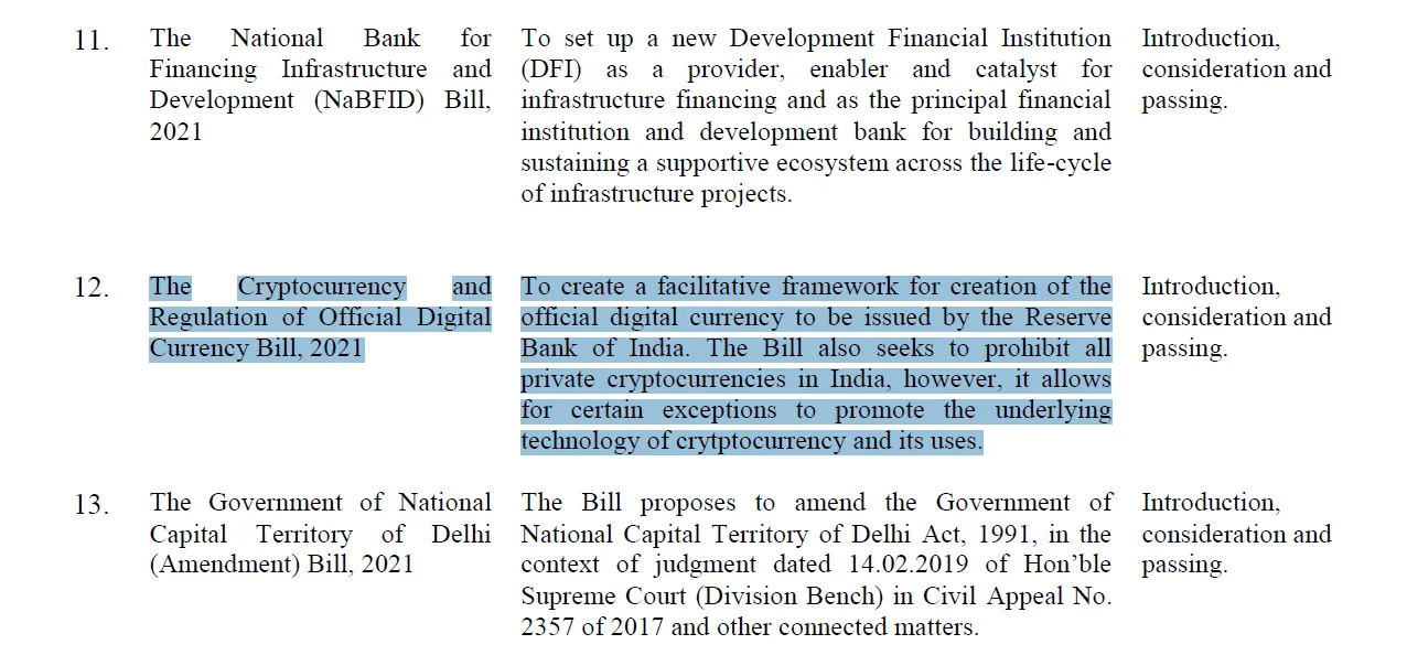 The indian government seeks to propose a law banning cryptocurrencies under which anyone involved in its trading or holding such assets could the content of the bill is not yet public but officials are confident of getting it passed in parliament.